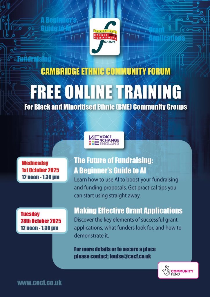 For black and Minoritised Ethnic (BME) Community Groups on Wednesday 1st October and Tuesday 28th October. See the flyer for more information and contact details.